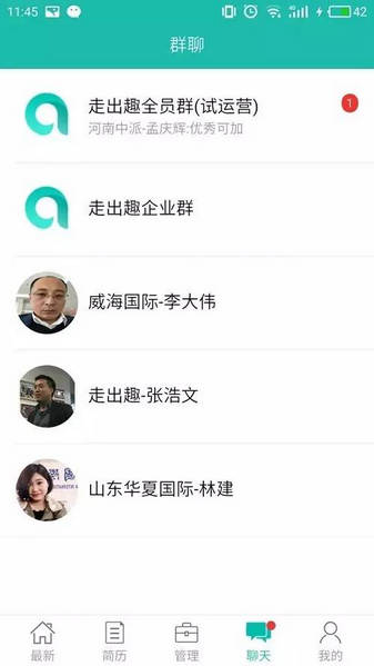 三、打開APP“聊天”功能,便能看到群聊提示,您選擇一個(gè)群并點(diǎn)擊進(jìn)入,方便建立自己的資源圈,擴(kuò)大交流范圍。