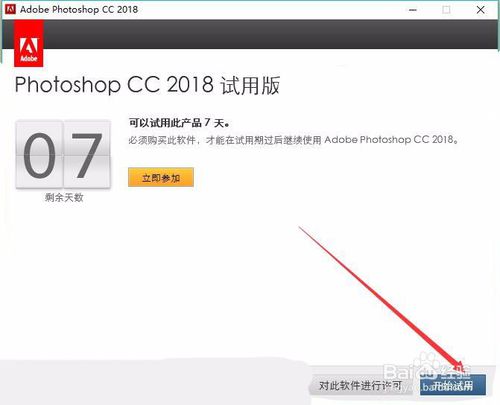 安裝完畢后會出現(xiàn)如圖,提示7天試用,點擊開始試用。確認能夠打開軟件。