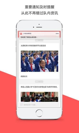 4, 消息: 互動足跡實時跟蹤,與各級少先隊組織、少先隊輔導(dǎo)員之間溝通交流一鍵送達。