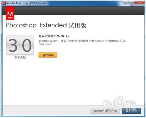 8、安裝完成后須首次運行Photoshop CS6,在試用界面單擊【開始試用】按鈕 (如果不經過這一步,破解之后的Photoshop CS6是普通版本,而非Extended版。)