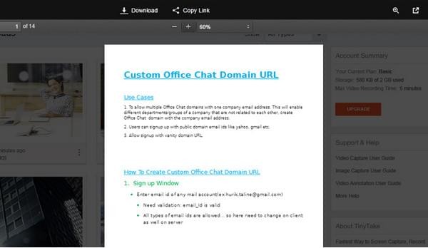 借助TinyTake查看器,您可以直接在瀏覽器中查看圖像,播放視頻,閱讀辦公文檔和PDF,而且計(jì)算機(jī)上不會安裝任何其他軟件。