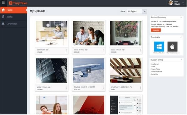1、TinyTake帶有一個(gè)在線用戶門戶網(wǎng)站,可以在云中保存您的完整捕捉和共享歷史記錄。