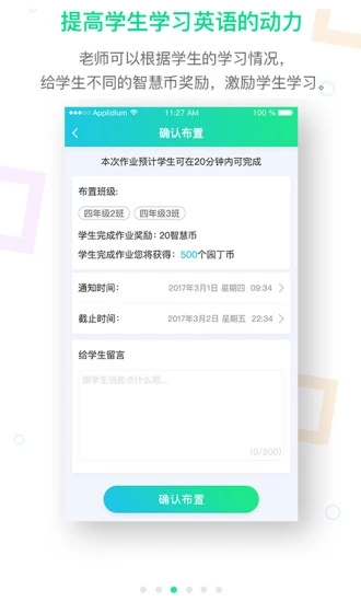 趣教,是一款專為小學(xué)英語(yǔ)老師設(shè)計(jì)的教學(xué)輔助軟件,幫助老師在線布置作業(yè),管理班級(jí)以及實(shí)時(shí)掌控學(xué)生學(xué)習(xí)數(shù)據(jù)。【功能介紹】