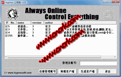 hypnus是一款基于WEB的遠(yuǎn)程控制軟件。無(wú)論電腦,手機(jī),還是游戲機(jī),只要能上網(wǎng)瀏覽網(wǎng)頁(yè),就可以遠(yuǎn)程控制電腦讓你隨時(shí)在線,掌控一切。可生成支持windows 或 linux 的客戶端。