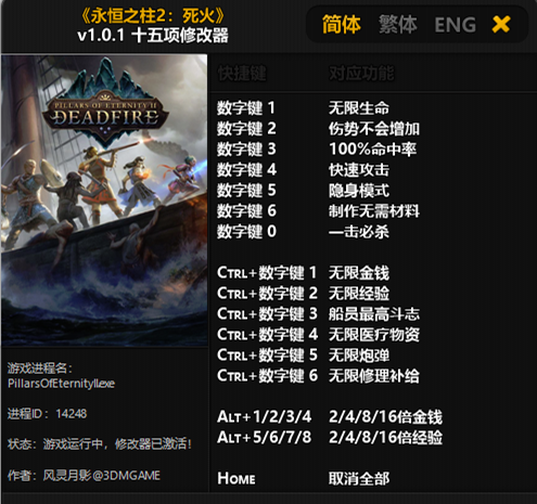 1. “無(wú)限金錢”在金錢改變時(shí)生效;“無(wú)限經(jīng)驗(yàn)”在獲得經(jīng)驗(yàn)時(shí)生效。2. “無(wú)限生命”激活時(shí),生命值會(huì)鎖定在最大值。但如果一瞬間受到超過(guò)生命值上限的傷害還是會(huì)死亡的。用“傷勢(shì)不會(huì)增加”可以無(wú)限復(fù)活。