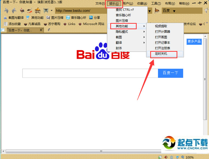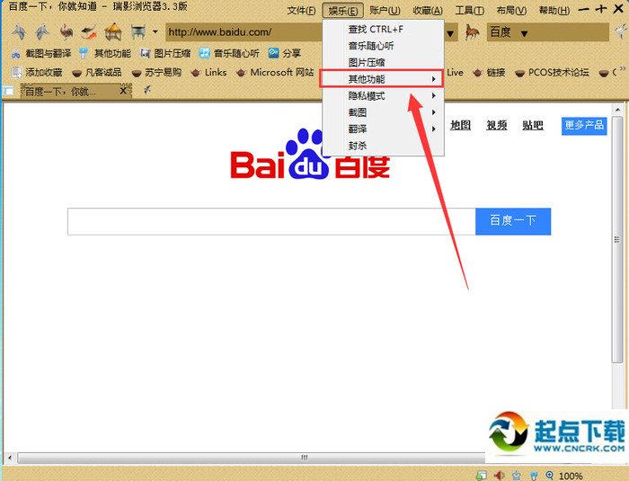 1、首先打開瑞影瀏覽器,然后在其頂部的菜單中找到【娛樂】。