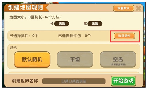 2.然后在創(chuàng)建地圖規(guī)則中依次點(diǎn)擊:選擇插件-選擇插件包;