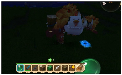 2、打死小動(dòng)物(雞、狼、牛、羊…),可獲得各種肉塊,需要用熔爐烤熟了再吃