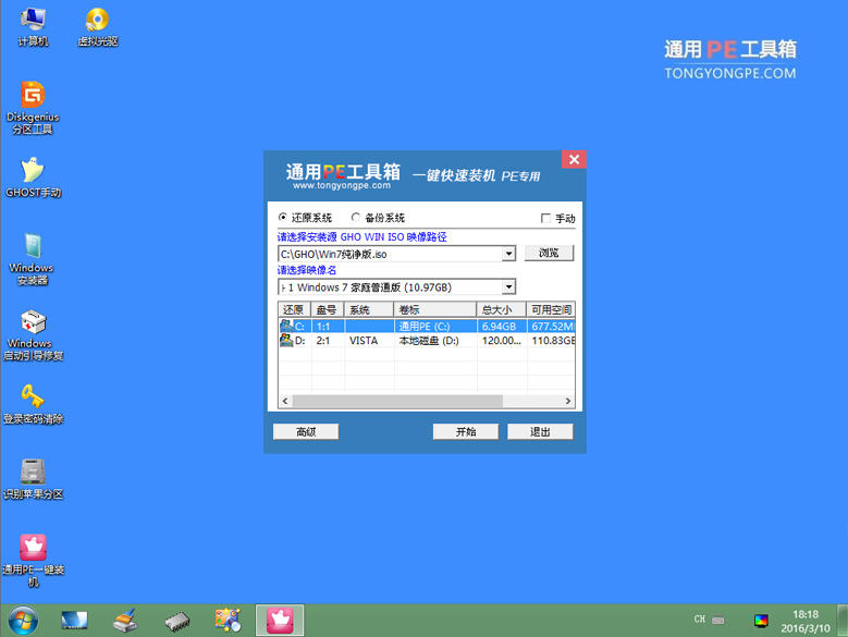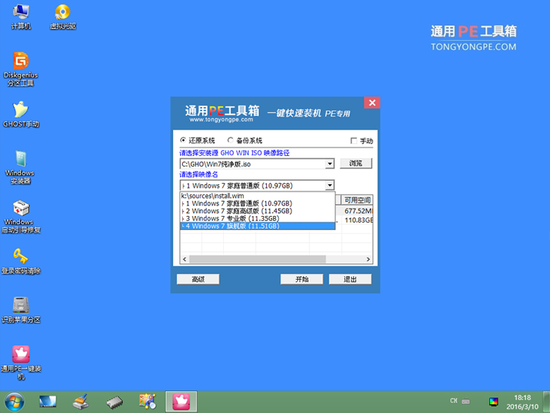 就這樣,很快通用PE一鍵U盤安裝 Win7 系統(tǒng)完畢!