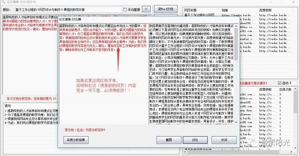 3點(diǎn)擊“進(jìn)行對比”,將切割的語句用百度進(jìn)行搜索,然后返回搜索結(jié)果進(jìn)行分析