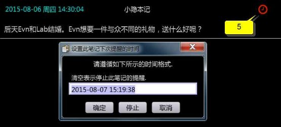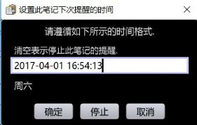 3. 直接回車,或者點(diǎn)擊[確定]按鈕。該條筆記的提醒即設(shè)置完畢。