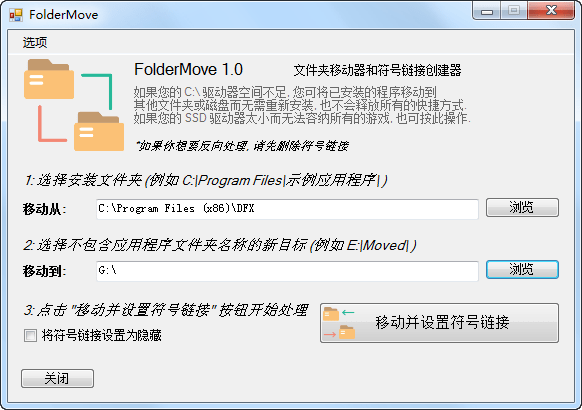 FolderMove 一鍵移動安裝文件夾FolderMove 自動制作符號鏈接