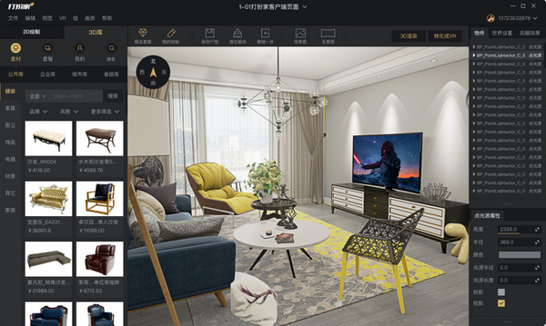 1、打扮家VR家裝平臺,為用戶提供海量的家具。2、選中的家具可以直接放進自己虛擬家中。