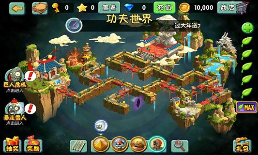 新的冒險(xiǎn)在《植物大戰(zhàn)僵尸2》中,玩家所涉及的游戲世界不再局限于前院后院了,新作將帶給玩家視野開闊并且靈活多變的冒險(xiǎn)世界。在神秘埃及,有阻擋射手攻擊的墓碑與僵尸沙塵暴的突襲;海盜港灣地圖中,有直接降落于場地前方的飛索僵尸,還有從無甲板的行列進(jìn)攻的海鷗僵尸;狂野西部地圖中,有可以上下滑動(dòng)的軌道礦車,能夠靈活變換植物的作戰(zhàn)位置,但同時(shí)也縮小了種植區(qū)域;功夫世界地圖中,出現(xiàn)了種下植物可以收獲能量豆的太極地塊,以及為普通僵尸提供道具的兵器架。