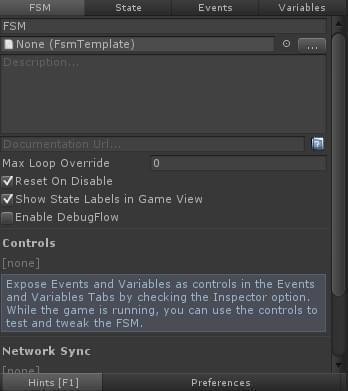 首先先來介紹下PlayMaker的編輯視圖其由FSM、State、Events、Variables四個窗口組成