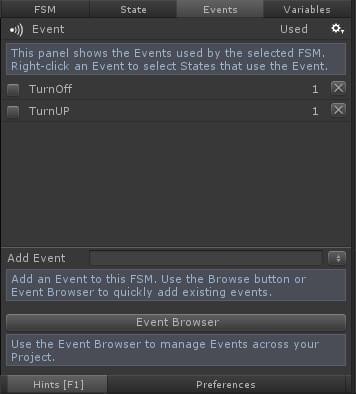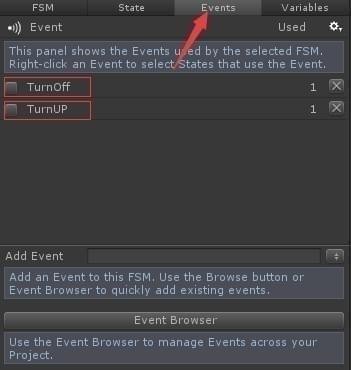 Events視圖:添加事件,如下圖添加了名為TurnOff、TurnUp事件
