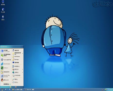 一款以卡通形象布衣父子為主題的電腦主題下載。很久沒有看見過這樣精美的卡通動(dòng)漫主題了,這是一款閃耀的藍(lán)色經(jīng)典,藍(lán)色桌面上是精美的卡通人物布衣父子。