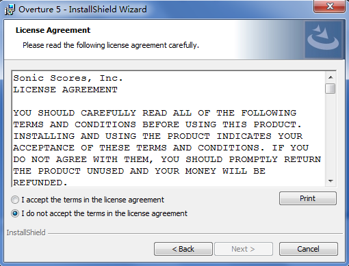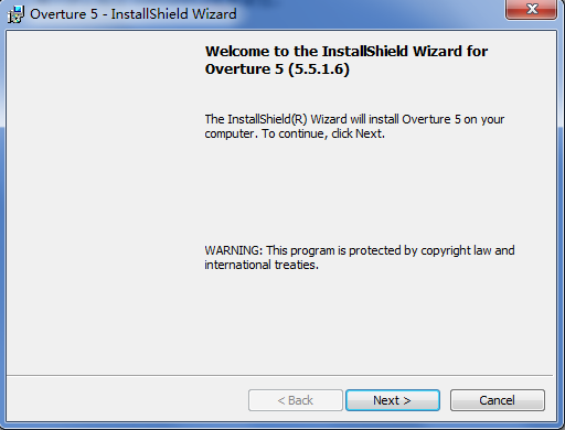 下載安裝包第一步,右擊Overture5.msi安裝包,彈出安裝對話框: