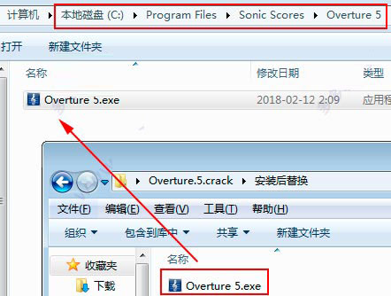 將【安裝后替換】目錄下的【Overture 5.exe】復(fù)制到安裝目錄下載覆蓋,默認(rèn)安裝目錄為【C:\Program Files\Sonic Scores\Overture 5】