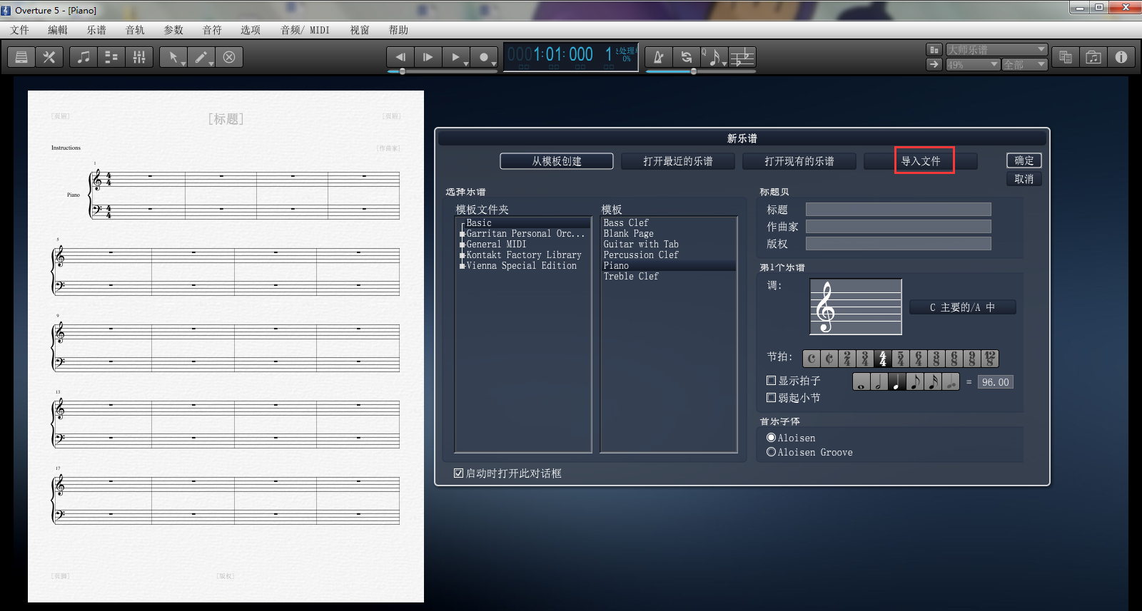 Overture自制譜表模板教程下載一首有你需要的模板的譜子,存在相應(yīng)文件夾下,使用Overture打開現(xiàn)有的樂譜,如Badinerie,點(diǎn)擊確定: