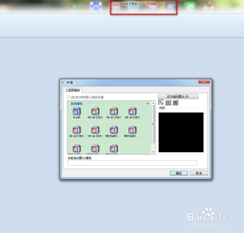 2、我們點(diǎn)擊“新建”按鈕,新建一個(gè)電子圖板,其能夠?yàn)橛脩籼峁┝薆LANK等多種不同的模板,并支持用戶進(jìn)行將其設(shè)置設(shè)置為默認(rèn)(若用戶需要編輯已有的圖紙,直接點(diǎn)擊“打開”即可)。