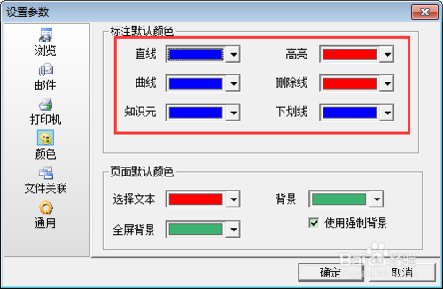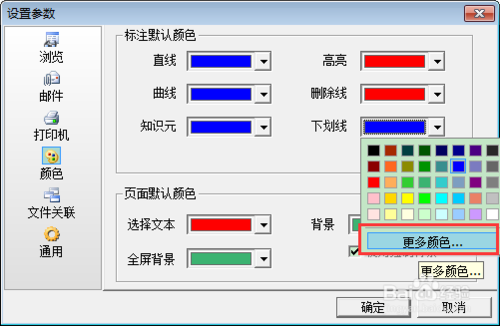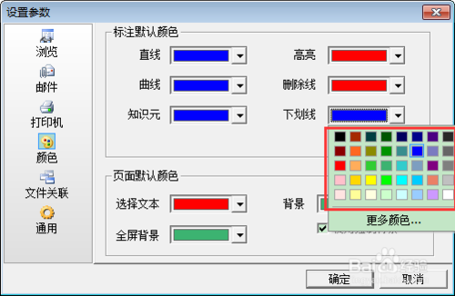 在設(shè)置參數(shù)的窗口,可對(duì)直線、曲線、下劃線等顏色的設(shè)置: