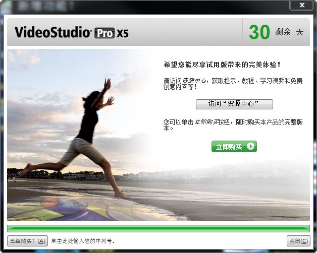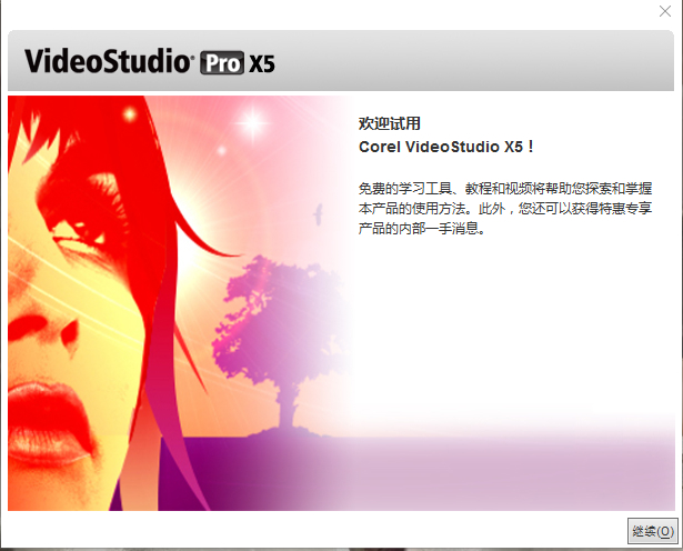 1、在安裝完成后會(huì)聲會(huì)影X5后,運(yùn)行,會(huì)出現(xiàn)“歡迎免費(fèi)試用30天”界面,點(diǎn)擊【繼續(xù)】,注冊(cè)一個(gè)賬號(hào)(已經(jīng)有賬號(hào)的直接登錄即可);