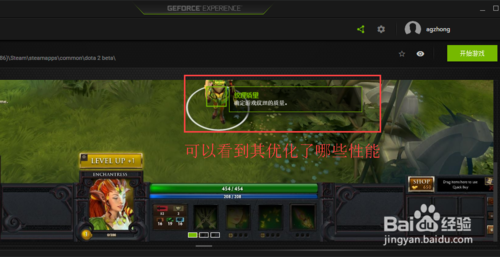 把鼠標(biāo)放到游戲界面上,會(huì)出現(xiàn)綠色的方框,可以看到GeForce Experience對(duì)游戲優(yōu)化哪些性能