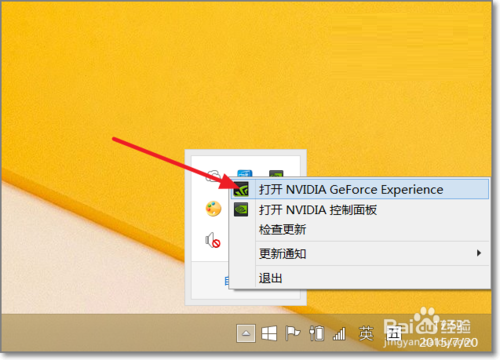 雙擊桌面的GeForce Experience快捷圖標(biāo),如刪除了,也可以如圖點(diǎn)擊打開(kāi)GeForce Experience軟件。