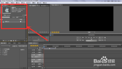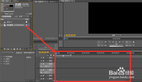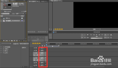 4、可以看到有如下三對個視頻條,分別為視頻1、視頻2、視頻3??梢苑謩e放入視頻、音頻和圖片,可在同一幀出現(xiàn)。