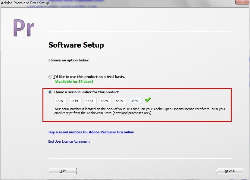 3.開始安裝的時候,選擇試用選項,無需輸入序列號。