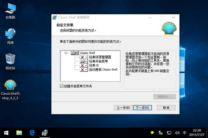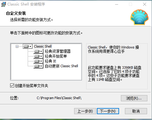 如何安裝只是經(jīng)典開始菜單或只是經(jīng)典瀏覽器?在您同意許可條款,安裝程序會問你要安裝哪些功能。默認情況下所有部件進行檢查。取消勾選您不想要的。