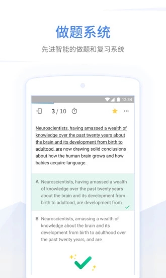 「 GMAT考滿分」,是考滿分超過6年技術(shù)研發(fā),幫助10萬+ GMAT中國考生完成網(wǎng)上備考的提分神器,涵蓋GMAT SC語法、GMAT CR邏輯、GMAT RC閱讀、GMAT PS數(shù)學(xué)\DS數(shù)學(xué)等練習(xí)內(nèi)容。GMAT考滿分在題庫中為廣大考生收錄5999+ 道真題,及多??几韶浺徊⑹杖肽抑校瑤湍銘?zhàn)勝世界上第二難的英語考試!?!熬珜W(xué)精練”助你輕松碾壓GMAT考試。【軟件特點(diǎn)】