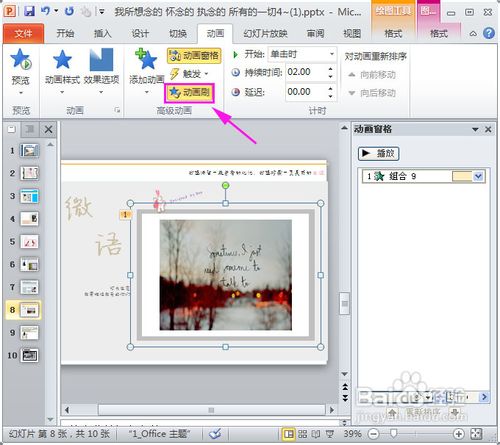 8、“動畫刷”的功用還可以同時應用不同的PPT文件上,前提是必須打開的是powerpoint2010版本,才可以同時應用“動畫刷”的功能哦。