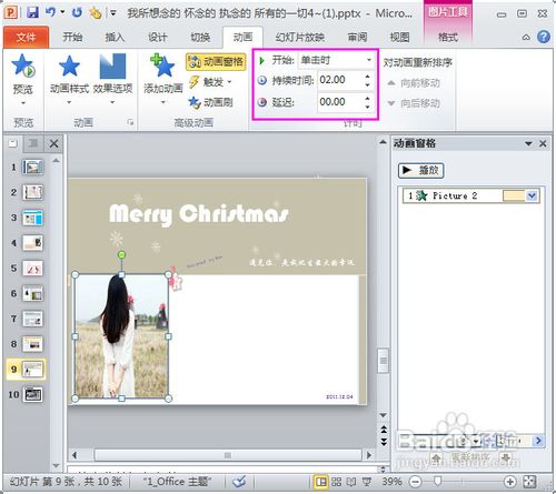 5、我們會從中發(fā)現(xiàn)到,被刷出來的動畫與之前設置的動畫效果不僅相同,而且該動畫的開始時間,持續(xù)時間,延遲時間都相同,這就是動畫刷非凡的“復制”效果啦: