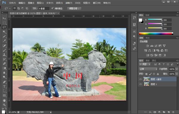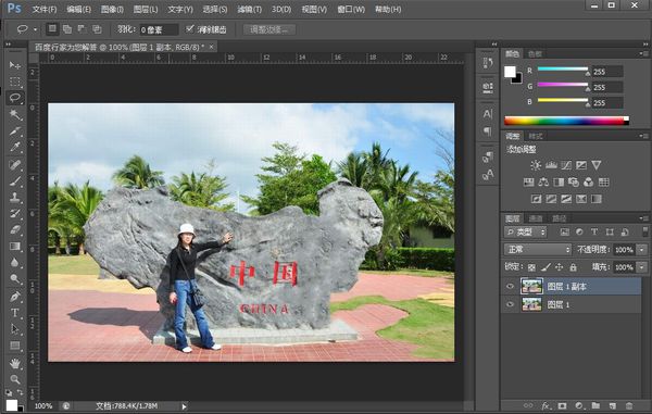 3、選擇”套索工具“,將人物的大概輪廓套選出來,如圖。按”Shift+F5“進行內(nèi)容識別填充。