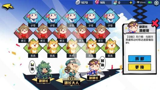 副團長二:滑板哥 向敵方英雄移動時移動速度增加8%。