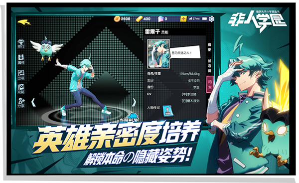 英雄也能有血有肉?《非人學(xué)園》各類英雄交互系統(tǒng),讓本命英雄從此不再冰冷!玩家可以選擇自己喜愛的英雄作為游戲界面的主形象,每個英雄都擁有多套獨立的動作和CV。游戲還推出了英雄親密度系統(tǒng),玩家與英雄一同作戰(zhàn)、進(jìn)行互動,都可培養(yǎng)與該英雄的親密度,親密度提高后,將解鎖專屬的隱藏皮膚/表情/語音等各類資源噢!