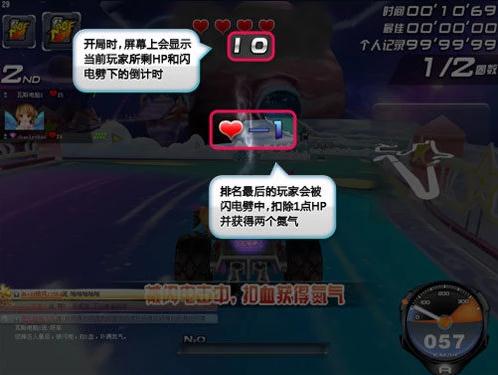 比賽中競速角色玩家可以漂移集氣,集到氮?dú)夂蟀纯崭窨梢酝瑫r(shí)為自己和同隊(duì)道具玩家加速。