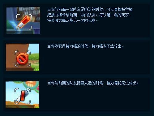 當(dāng)你與前面一名隊(duì)友足夠近的時(shí)候,可以直接按空格把接力棒傳給前面一名的隊(duì)友。每隊(duì)第一名的玩家,將傳遞給每隊(duì)最后一名的玩家。