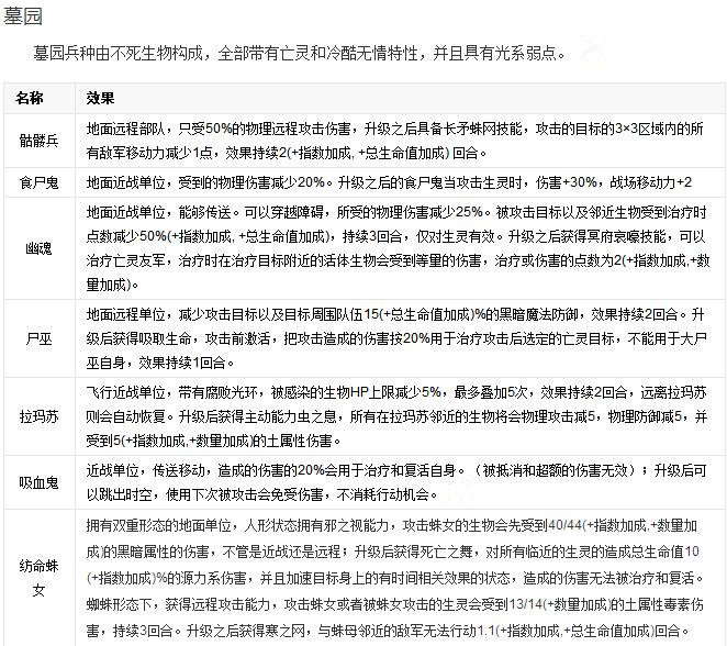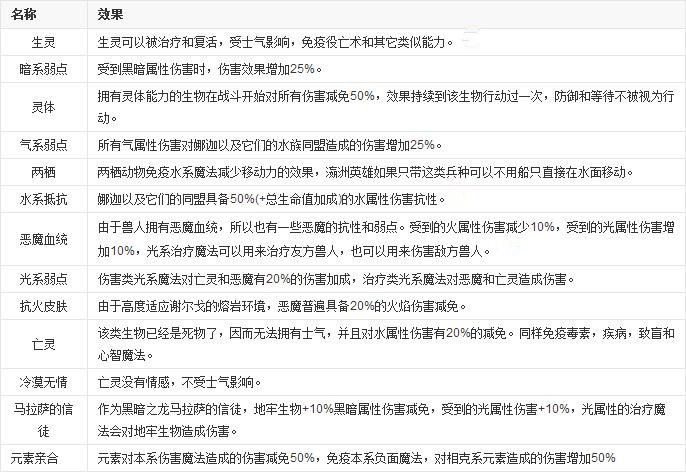 在《英雄無敵6》中,兵種單位的天生屬性更加詳細(xì)具體。列表如下
