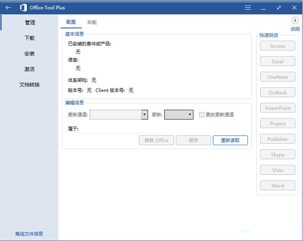 3、管理 Office。通過 OTP,你可以查看當(dāng)前 Office 的信息,配置當(dāng)前 Office 的更新。還可以一次性卸載多個版本的 Office,或者刪除某個語言包。OTP 還提供官方卸載工具和腳本,一鍵清除 Office 殘留。