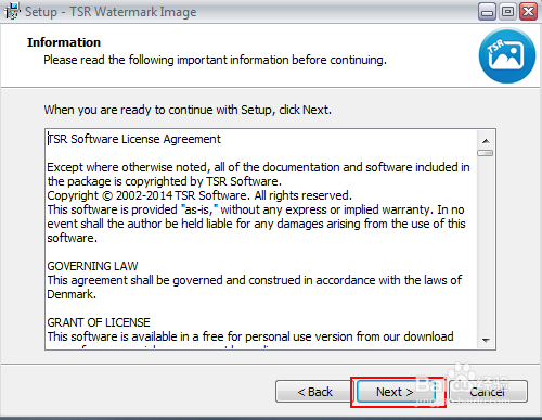 首先,下載“TSR Watermark Image”點(diǎn)擊“NEXT”進(jìn)入下一步。