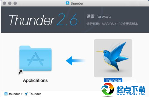 4、隨后在新彈出的窗口里,直接把迅雷圖標拖動到 Applications(應用程序)目錄中即可。