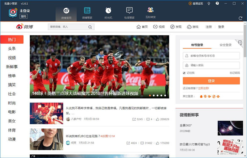 批量小管家是專為新浪微博用戶設(shè)計(jì)的一款批量管理軟件。這款軟件有大大小小的21項(xiàng)服務(wù),能對(duì)微博、粉絲朋友、評(píng)論、收藏、點(diǎn)贊、APP、黑名單、時(shí)光機(jī)、私信等進(jìn)行管理與批量管理,它現(xiàn)在已經(jīng)有2000萬+用戶,所以您可以放心使用。批量刪除微博,評(píng)論,收藏以及關(guān)注。輕松簡單管理您的海量微博信息,一鍵搞定簡潔高效,微博必備工具。推薦使用火狐或者谷歌瀏覽器。