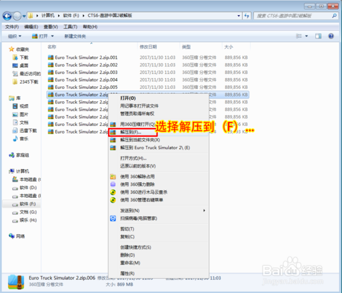 4、選擇解壓到(F)...