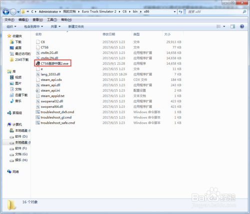 11、CTS6遨游中國2啟動程序在Euro Truck Simulator 2\C6\bin\x86文件夾里面。