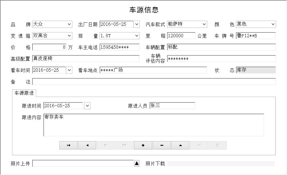 《二手車銷售管理系統(tǒng)簡易版》專門為二手車行業(yè)的車輛銷售管理開發(fā)的一款軟件。該系統(tǒng)錄入車源信息,客源信息,使經(jīng)營者隨時(shí)了解自己庫存的車輛狀況,做出正確的經(jīng)營決策。軟件操作簡單,查詢快捷方便,是您管理二手車信息的好幫手!與《二手車銷售管理系統(tǒng)》的區(qū)別在于,簡易版沒有收車管理,對(duì)于客戶寄存賣車提供了方便。 系統(tǒng)包括以下兩部分: 1.業(yè)務(wù)管理:車源信息、客源信息。 2.查詢管理:所有車源查看、倉庫車源查看、所有客源查看、成功客源查看、失敗客源查看。