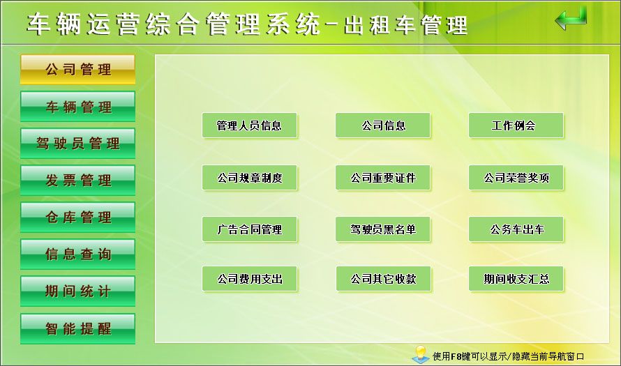 一、出租車管理:出租車車輛信息、違約金統(tǒng)計(jì)、車輛買費(fèi)、發(fā)票管理等二、農(nóng)客管理:農(nóng)客車輛信息、駕駛員管理、車輛保險(xiǎn)等