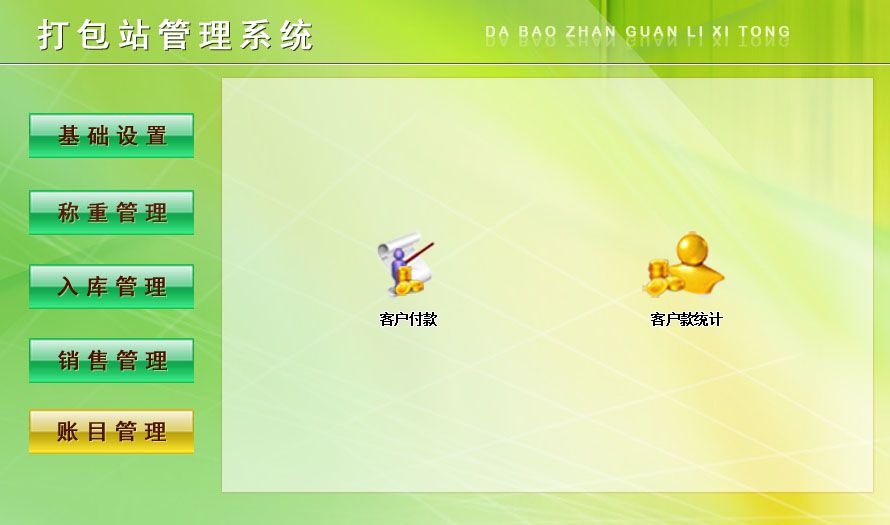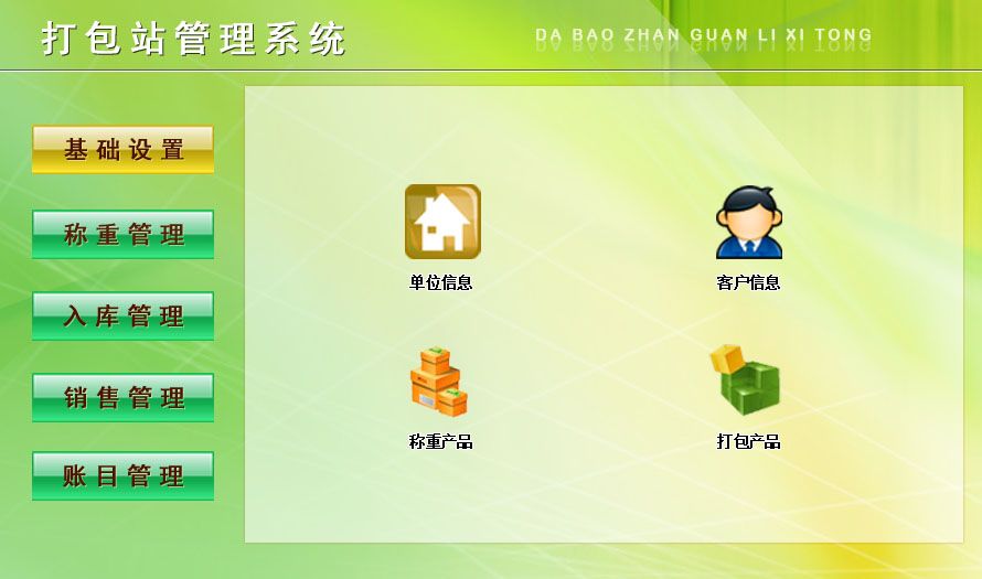 《打包站管理系統(tǒng)》是根據(jù)廢紙打包站需求,為適應(yīng)未來的發(fā)展,開發(fā)一整套廢紙行業(yè)系統(tǒng)軟件管理體系,提供整體的廢紙行業(yè)信息化解決方案。 系統(tǒng)包含: 1、基礎(chǔ)設(shè)置:單位信息、客戶信息、稱重產(chǎn)品、打包產(chǎn)品 2、稱重管理:稱重登記、稱重查詢 3、入庫管理:打包入庫登記、入庫查詢 4、銷售管理:銷售登記、銷售查詢、當(dāng)前庫存、利潤統(tǒng)計(jì) 5、賬目管理:客戶付款、客戶款統(tǒng)計(jì)